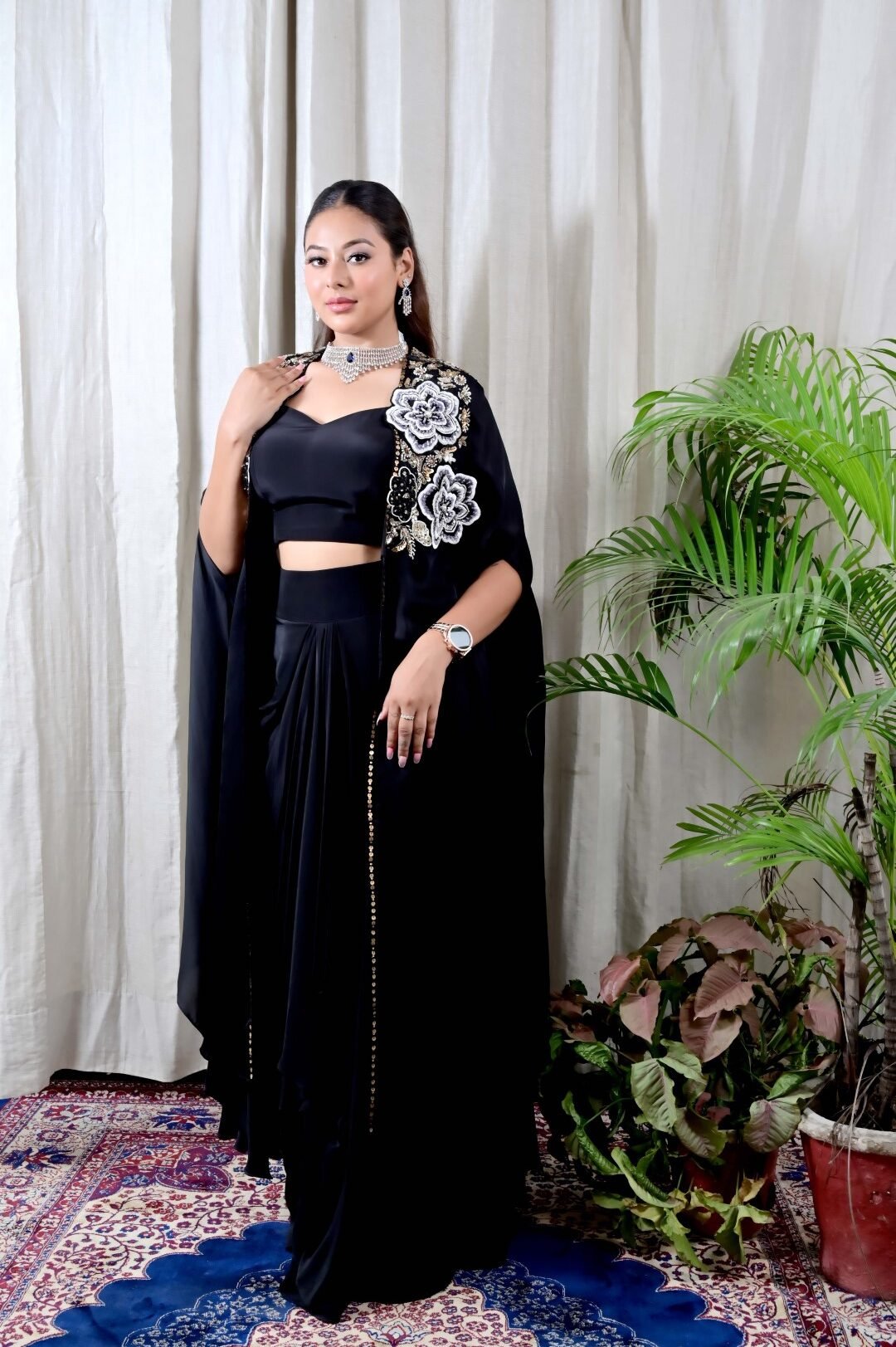 At Karpasa, we create outfits that blend comfort, elegance, and timeless fashion. This Dark Navy Crop Top with Embroidered Shrug & Skirt is a reflection of our belief that every woman deserves to feel graceful, stylish, and unforgettable.