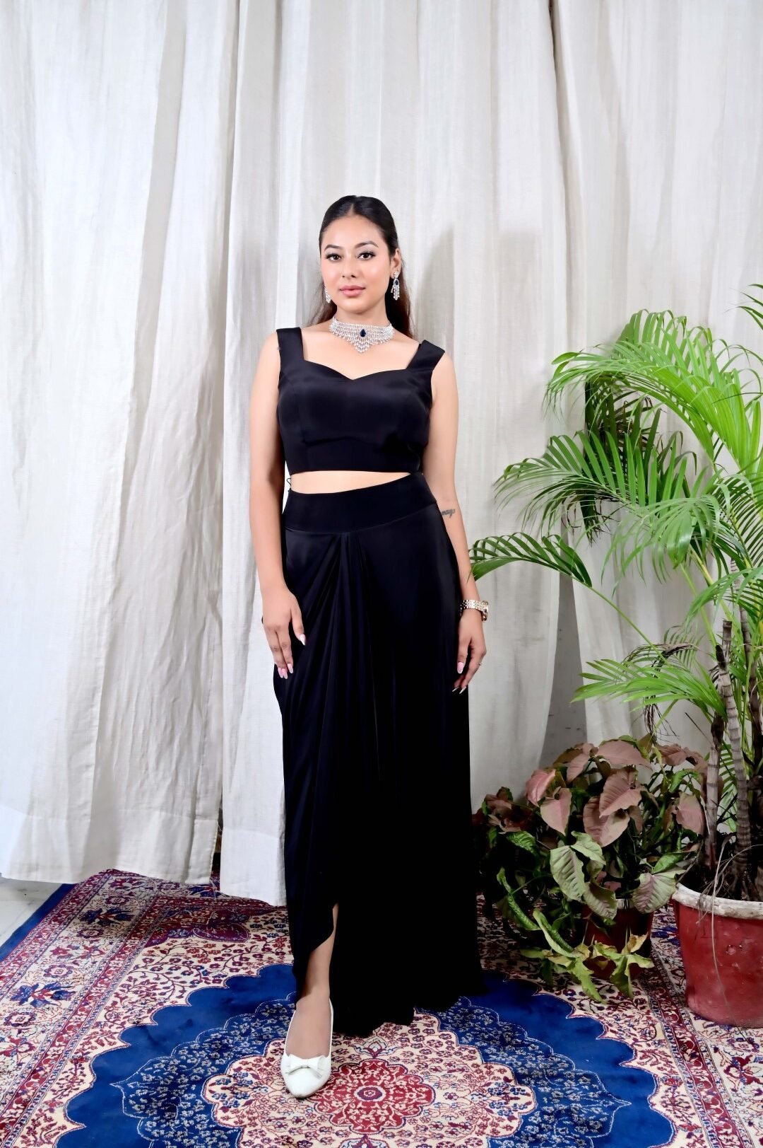 The Skirt: Flowing, draped silhouette designed to add grace with every step.